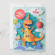 Make your child's birthday roar-some with this playful and vibrant dinosaur-themed party invitation! Featuring a cheerful orange T-Rex in a party hat surrounded by balloons, stars, confetti, and colourful decorations, this invite is perfect for dino lovers turning any age. Personalise with your child's name, age, party location, and date to make it uniquely theirs. Ideal for boys or girls who adore dinosaurs, this design sets the tone for an unforgettable prehistoric celebration!