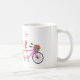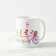 colourful tandem bicycle with cute birds family, hearts and flower basket, vector drawing, art illustration