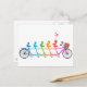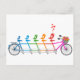 colourful tandem bicycle with cute birds family, hearts and flower basket, vector drawing, art illustration