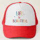 It's big enough so that it will fit my dad's big ol' head, but its nice that it also has straps in the back, so he could adjust it if needed. I haven't tried to wash it yet, but I'm hoping the print lasts. Overall, I know my dad is going to love it and I can't wait to give it to him for Christmas. The quality of the image is excellent. The colors are bright and pop out, and the words are legible.