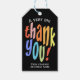 A colourful very big thank you appreciation gift tag. This modern typographic design on black is the perfect way to say thanks in style. Personalise with a custom name and message. This would work really well for staff appreciation, a thank you to nurses or caregivers, or teacher appreciation.