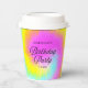 This elegant birthday paper cup features a tie die rainbow in pastel colours.