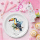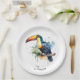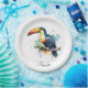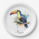 colourful toucan sitting on a branch paper plate