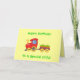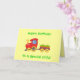 Colourful Toy Train Children's Happy Birthday Card. Buy as is, or Customise with your own wording on the front and inside by using CUSTOMIZE. Features a Cute Red Cartoon Engine with yellow wheels, pulling a colourful cart. Happy Birthday to A Special Child is written in green text on the front. Inside the greeting is Hope Your Day Is Extra Special. Keep or Personalise with your own message inside or add a name to the front.