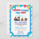 This design features a colourful train, bunting flag and building abc blocks. Great for a 2nd birthday party.