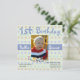 Colourful pastel floral background on this sweet square birthday party invitation. A picture area, in the middle, for the birthday child's photo and a cute cartoon train decorates the bottom of the photo frame. All text is customisable to suit your party needs. Perfect for a baby's first birthday.