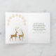 Christmas tree with a lot of decorations and presents. Inside card - two golden deers and snowflakes. You can adjust text according to your requirements.