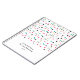 A fun, colourful notebook, featuring a pattern of scattered coloured triangles, with white space in bottom third of the card for your name and notebook title in black,