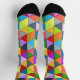Many triangles in yellow, orange, red, pink, blue, green colours creating fun modern geometric pattern.