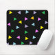 Colourful Triangles mousepad. Fun mousepad has colourful triangles pattern on a black background.
