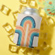 Retro style illustration with colourful (yellow, blue, orange, navy blue, beige, turquoise) arches decoration on beige background. You can add your name/monogram to personalise the item.