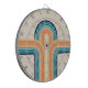 Retro style illustration with colourful (yellow, blue, orange, navy blue, beige, turquoise) arches decoration on beige background. You can add your name/monogram to personalise the item.