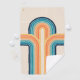 Retro style illustration with colourful (yellow, blue, orange, navy blue, beige, turquoise) arches decoration on beige background. You can add your name/monogram to personalise the item.