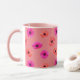 This mug features a beautiful and cute luminous tropical colourful pink peach orange spring flowers 3D style pattern design on blush pink background. It's a beautiful and cute trendy design for a birthday , anniversary or any occasional unique gift for women and girls who likes colourful 3D style flowers. This mug makes a memorable gift for someone special.