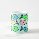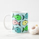 Colourful fish decorate this mug. Cartoons of tropical fish. Fun bright fish designs. Pattern of fish in a cartoon style. Gift for an aquarium owner - a fish keeper who has an aquarium or fish pond perhaps.
