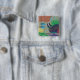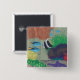 Painting of various colourful tropical fish, swimming, and a star fish, printed on pin on buttons.