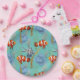 Paper party plates feature Colourful tropical fish pattern includes clown fish and underwater sea plants on light aqua background
