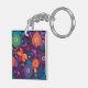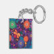 Colourful Tropical Floral Pattern with Bold Blooms Key Ring