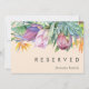 This colourful tropical floral | peach reserved sign is perfect for your modern boho destination, green, purple, peach wedding. Design features an elegant bouquet of classic beach watercolor greenery and flowers that may include sage green eucalyptus, mauve and red protea, blush pink hibiscus, orange and blue bird of paradise, and dark green palm leaf. The design is ideal for a simple, creative, unique travel wedding for spring, summer, fall, or winter! Please find other matching or coordinating wedding stationery in the rest of the collection.