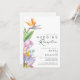 This colourful tropical floral | wedding reception invitation is perfect for your modern boho destination green, purple, peach wedding reception. Design features an elegant bouquet of classic beach watercolor greenery and flowers, including sage green eucalyptus, mauve and red protea, blush pink hibiscus, orange and blue bird of paradise, and dark green palm leaf. The design is ideal for a simple, creative, unique travel wedding for spring, summer, fall, or winter! Please find other matching or coordinating wedding stationery in the rest of the collection.
