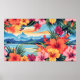 Colourful Tropical Flowers & Landscape Poster