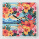 Colourful Tropical Flowers & Landscape Square Wall Clock