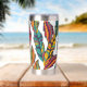 Colourful Tropical Leaves Pattern Monogram Personalised Thermal Coffee Glass.