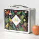 Colourful Tropical Parrots Leaves, Flowers Monogra Metal Lunch Box