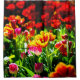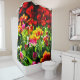 Field of colourful tulips. Multicolor bulbs, play of light and shadow. Feast of bright colours and beauty of spring flowers. Simulated oil painting from a photography. Shower curtain to decorate your bathroom for fun and good mood.