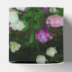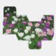 A photo of tulips in white, pink and purple interspersed with other little flowers and leaves.