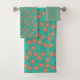 Colourful Turquoise & Coral Orange Flower Pattern Bath Towel Set