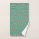 Stylish bath towel set featuring bright colourful dainty turquoise and coral orange flower pattern.