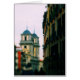 Send a note to someone with this greeting card and shot from Plaza Mayor of a pair of colourful twin towers in Madrid, Spain.
