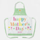 Colourful typography and hearts, mint green border Happy Mother's Day all-over print Apron. It showcases the text "Happy Mother's Day" in colourful typography, customisable date and hearts. Mint green bands with scalloped edges are placed on the upper and bottom of the apron with the personalised text "Best Mum Ever". A cool gift for your mum.
