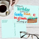 The birthday postcard front offers fun and colourful birthday wishes and the back offers room for a handwritten note with template return address and "Happy Birthday to You!" vertical divider. Personalise, delete or edit using the design tool to select a font style, size and colour you prefer. If you don't want to send it openly with your personal message you can add an envelope with the order.