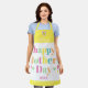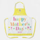 Colourful typography, yellow border Happy Mother's Day all-over print Apron. It showcases the text "Happy Mother's Day" in colourful typography, customisable date and hearts. Yellow bands with scalloped edges are placed on the upper and bottom of the apron with personalised name. A cool gift for your mum.
