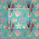 Colourful watercolor illustrations of seashells, coral and underwater plant life create a pattern on aqua background