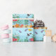 This colourful wrapping paper is teeming with life, full of unusual fish, and sea life, including starfish, cuttlefish, sea anemones and a bright red submarine.