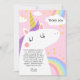 Colourful Unicorn and Rainbows Birthday Party Thank You Card