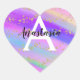 Girly and glam heart sticker with a colourful unicorn rainbow background, and gold glitter sparkles confetti. Personalise with your custom name in black and your monogram initial in white. You can change the text colour and font style and size using the customise option.