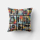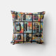 Colourful urban graffiti patchwork pattern throw pillow featuring bold abstract blocks, expressive brush strokes, scribbles, stars, and mixed-media textures in bright blue, yellow, pink, orange, and black. Energetic and edgy with a modern street art aesthetic, this seamless design is ideal for graffiti art lovers, maximalist style fans, creative teens, and contemporary art enthusiasts.