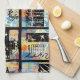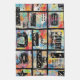 Colourful urban graffiti patchwork pattern kitchen towel featuring bold abstract blocks, expressive brush strokes, scribbles, stars, and mixed-media textures in bright blue, yellow, pink, orange, and black. Energetic and edgy with a modern street art aesthetic, this seamless design is ideal for graffiti art lovers, maximalist style fans, creative teens, and contemporary art enthusiasts.