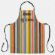 Large Size Apron with customisable text template Queen Of Cakes typography and printed with Colourful Vertical Retro Stripes graphic artwork design by TheFabricSeal at Zazzle #ZazzleMade https://www.zazzle.com/store/thefabricseal