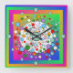 Colourful Vibrant Rainbow Circles and Dots Square Wall Clock