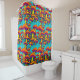 Colourful trippy psychedelic mushrooms in blue, orange, purple and yellow shower curtain.