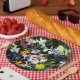 Colourful Victorian Iris Flowers on Black Pattern Paper Plate