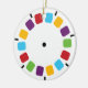 The design for this round Christmas ornament was inspired by a classic children's toy. Remember Christmases of yesteryear with this nostalgic design. This colourful illustration depicts a Viewmaster reel in bright colours: red, bright blue, sunny yellow, purple and bright green against a white background with black accents. The simple design has a retro modern look.