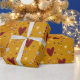 Christmas theme wrapping paper featuring colourful hand-drawn holiday symbols with red gold and vintage yellow colours.