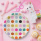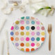 Colourful vintage geometric dots - retro design - cream white background and colourful dots in pink, yellow, green, blue and orange.