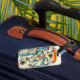 A wonderful vintage, colourfully illustrated postcard map of the State of Michigan repurposed on a luggage tag.